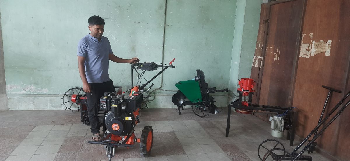 धान रोप्ने सानो मेसिन, घाँस खुर्किने, ड्याङ बनाउने मेसिन, खाल्डो खन्ने हातेऔजार, आलु रोप्ने, आलु गोड्ने, घाँस तथा पराल काट्ने, धान काट्ने सानो मेसिन, प्लास्टिक ओछ्याउने र केराको फाइबर निकाल्ने मेसिन तयार भएका उनले बताए।